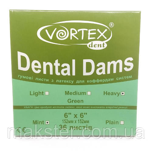 Коффердам Vortex (платки для коффердама) — 36 шт. в пакованні. Натуральний, не опудрений, стерильний. Призначений для ізоляції ротової порожнини, з природного латексу. мм Дає можливість стоматологічним хворим тримати рот відкритим упродовж тривалих періодів часу. Дає можливість стоматологічним хворим тримати рот відкритим упродовж тривалого часу.